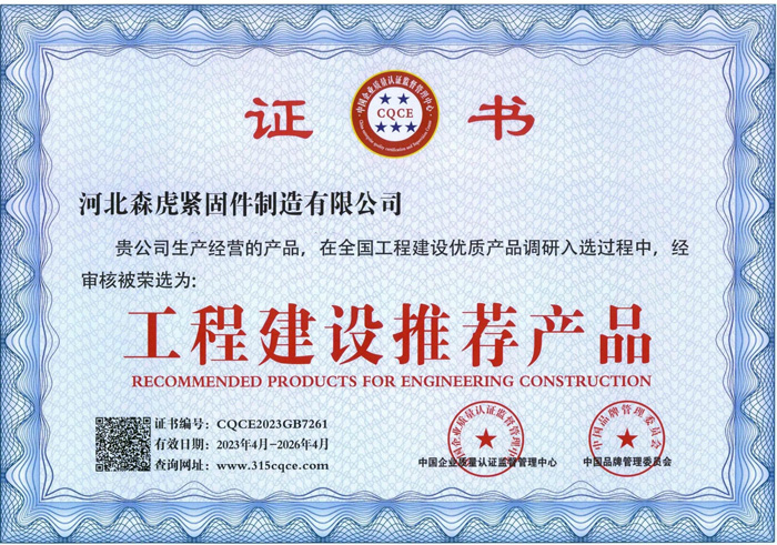 河北森虎緊固件制造有限公司成立于2011年,是建廠較早的緊固件企業(yè)。西臨京廣線,東臨京深高速,地理位置優(yōu)越,交通便利。 主要生產(chǎn):化學(xué)錨栓、機(jī)械錨栓、定型化學(xué)錨栓、高強(qiáng)度8.8級化學(xué)錨栓、自切底機(jī)械錨栓、車修壁虎,膨脹螺栓,植筋膠。 質(zhì)量方針:先進(jìn)技術(shù)、科學(xué)管理、優(yōu)良品質(zhì)、用戶滿意; ...